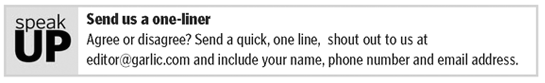 about the fire, please e-mail editor@garlic.com or call 847-7037.