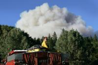 Right now there are approximately 720 firefighters and prison-crew members on site. By Wednesday, Kemper expects to have 1,200 firefighters on hand. Crews from Seaside, Gilroy, Santa Clara, San Mateo and Santa Cruz counties and the Spring Valley Volunteer Fire Department responded to calls for help fighting the blaze, which continues to threaten about 50 private cabins in the area.