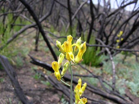 (2) Populations of Dicentra chrysantha, a perennial plant, have been found in burned areas on Booze lake Road, Bear Mt. Road, Willow Ridge Road and near Robison Falls. Some plants continued to bloom well into October, 2008